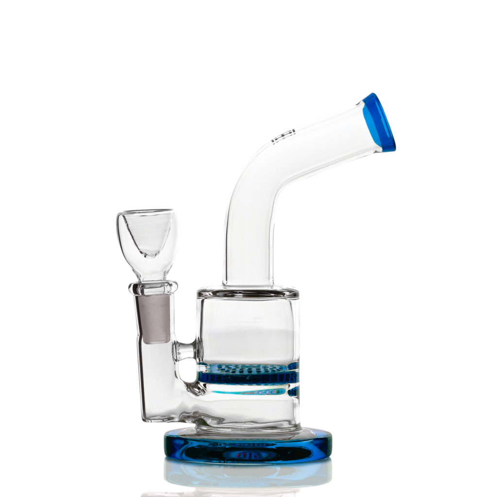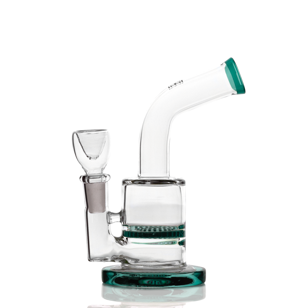 A honeycomb perc is a must try for any consumer and if you haven’t, the HEMPER Honeycomb Rig will become an instant classic in your collection. Take one look at the perc and you’ll know where it gets its name. The decked this rig out with a 360 degree connected Honeycomb percolator placed around the tube of a pitch-neck barrel style rig providing maximum diffusion with minimal splashback. All of this packed into a small rig means its great for travel and certainly excellent for sampling concentrated terps and flower alike.