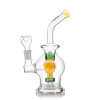 Our globe-shaped pinapple themed rig features our trusted 360-showerhead perc and a fully functional pineapple splash-guard. Top it off with a yellow accented mouthpiece atop a pitched neck (for both style and splash protection), and you’ve got your self a centerpiece rig and a trusty ripper in one.